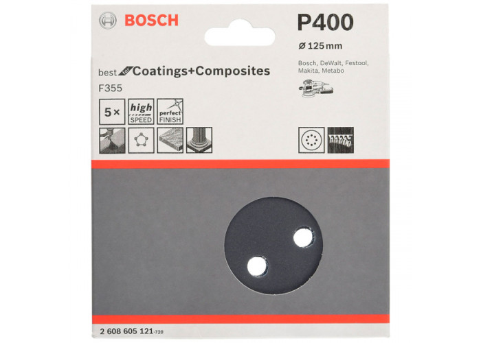 Шлифовальный лист Bosch F355 Best for Coatings and Composites 125 мм, зерно 400, 5 шт
