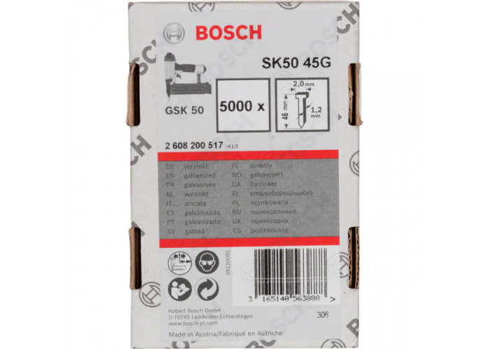 • 5000 оцинкованих штифтів Bosch SK50 45G з потайною головкою 2 мм.