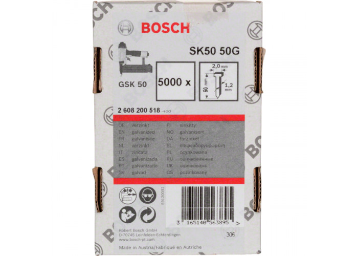 - 5000 оцинкованных штифтов Bosch SK50 50G с потайной головкой 2 мм.