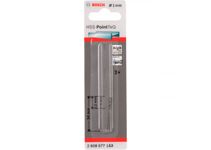 Сверло спиральное Bosch HSS-PointTeQ, 1х12х34 мм, 2 шт