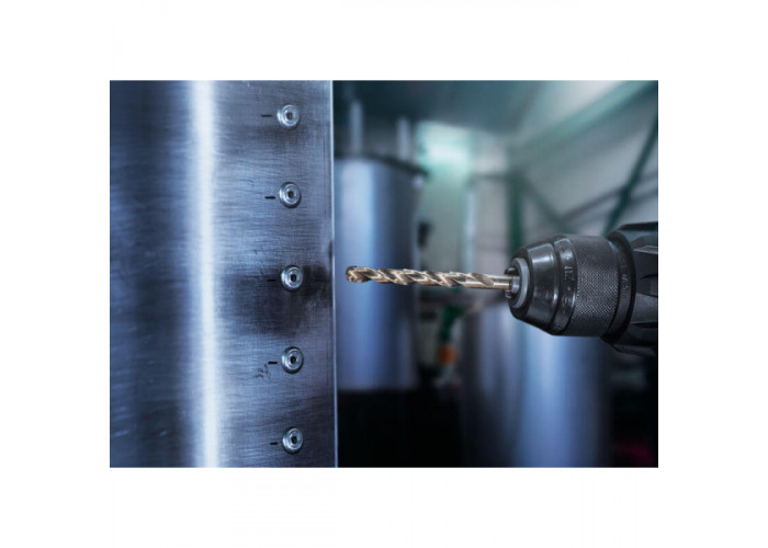 • Для точного початку свердління свердло оснащене спеціальним центрувальним наконечником, який запобігає зісковзування з поверхні матеріалу та сприяє акуратному позиціонування навіть на гладких металевих заготовках.
