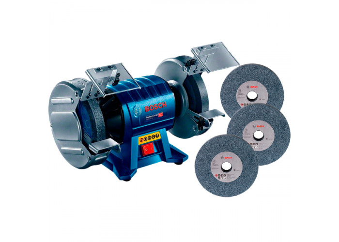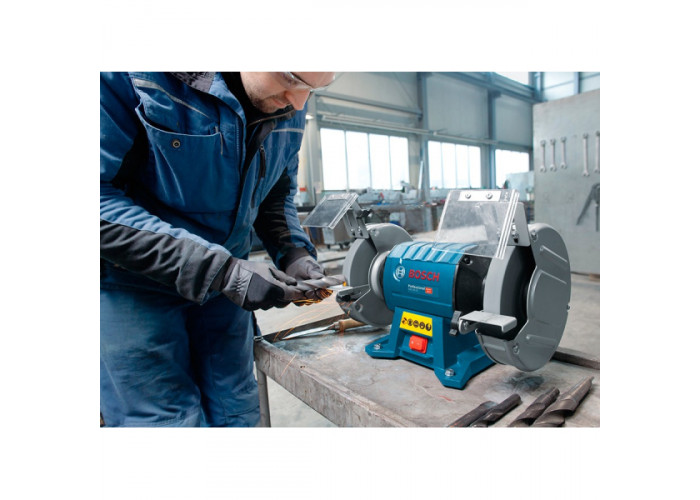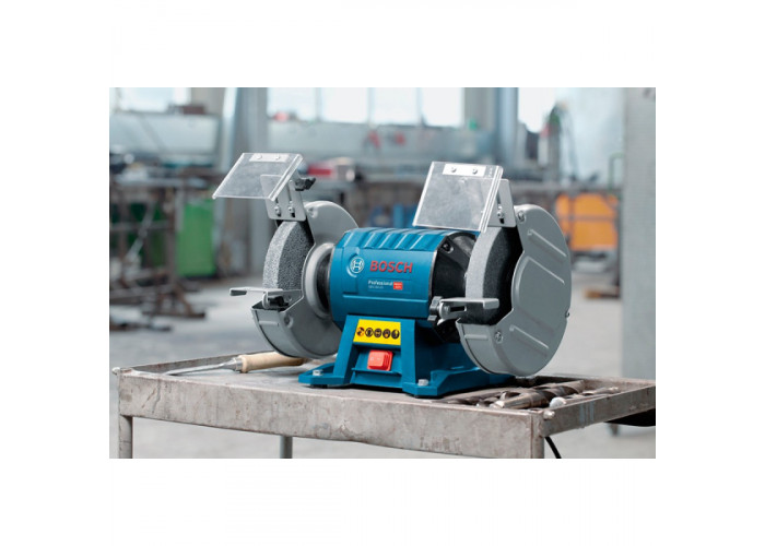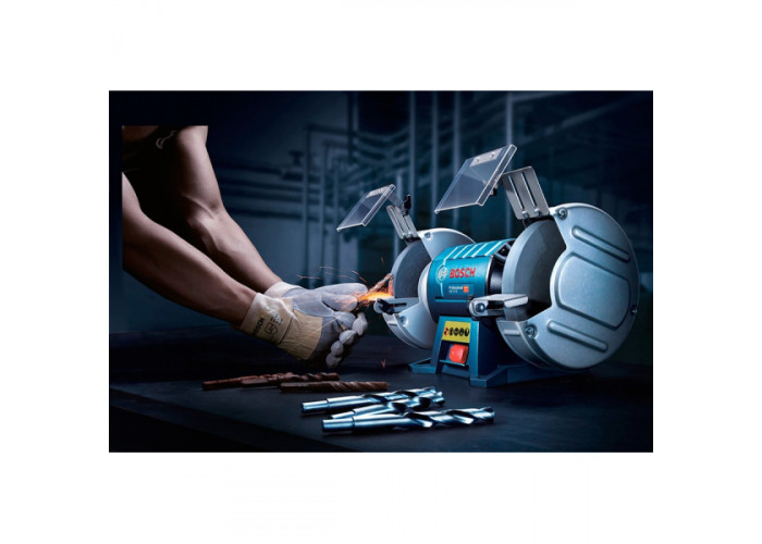 Заточить инструмент, снять заусенцы с металла, отшлифовать металлические детали поможет двухшпиндельное электроточило Bosch GBG 60-20. Мощное точило (600 Вт) поставляется с тремя шлифкругами зернистостью 24, 36 и 60, диаметром 200 мм, шириной 25 мм, с отверстием под посадку 32 мм.
