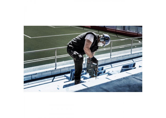 - Володіє повністю твердосплавною голівкою, яка являє собою вдосконалену конструкцію з чотирма ріжучими крайками. Цю головку виготовлено з міцного металу, і вона не тільки не заїдає, а й не слабшає під час свердління з ударом. Це значно підвищує його довговічність і ефективність під час роботи з армованим бетоном.