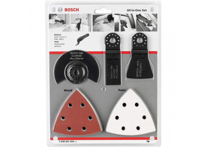 - Для пиления, шабрения, шлифования древесины и металла многофункциональными инструментами Bosch предлагаем универсальный набор из 13 насадок.