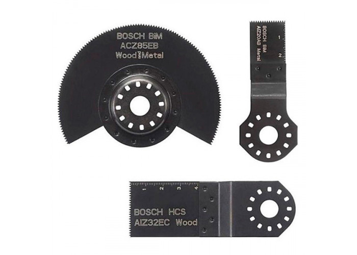- Сюда вошли пилка по древесине AIZ 32 EC, сегментированный пильный диск ACZ 85 EC по дереву и пластмассе, пильное полотно AIZ 20 AB для резки заподлицо медных труб, погружного пиления гипсокартона, древесины.
